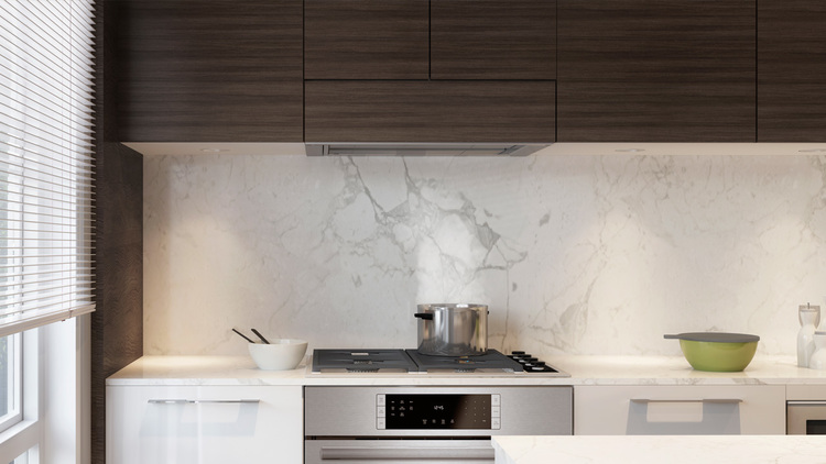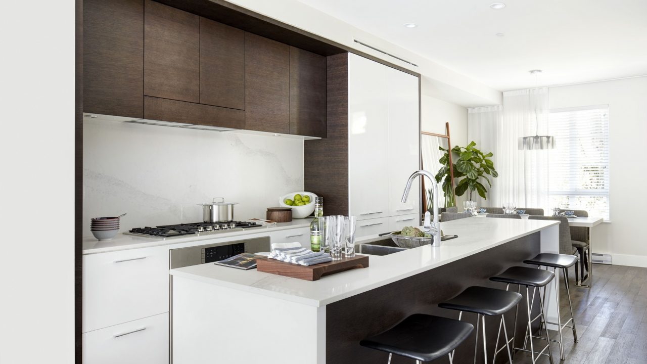 This unit is an inside unit on quiet street facing Manitoba St, 2 underground parking stalls right in front of the unit’s basement. Air conditioned, high end appliances, upgraded hardwood floor in all bedrooms, strata fee around $300 which is cheap. Completion estimated to be April 2018.